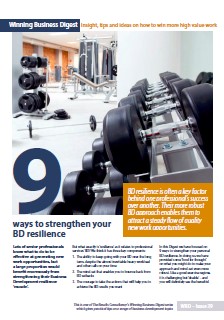 WBD40 BD ResilienceBD resilience is often a key factor behind one professional’s success compared with another.  The more robust approach of the successful professional enables them to gain a steady flow of quality new work opportunities.  To them, their BD activities are intrinsic to everything they do – not an add-on.